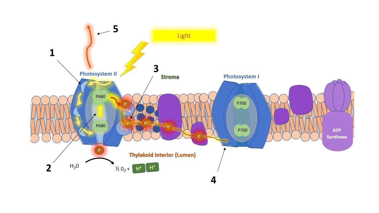 (2) Trapping flux: Channeled energy from excited chlorophyll to the reaction center to be converted into the electron transport chain (QA reduction).
