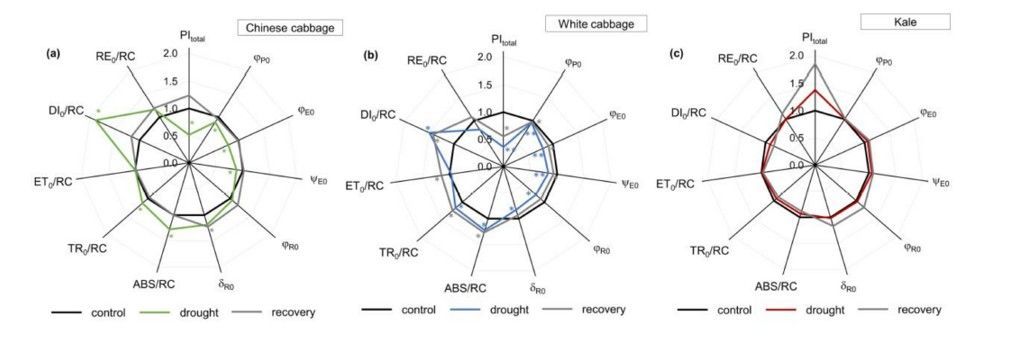 30. Zhou, R., Kan, X., Chen, J., Hua, H., Li, Y., Ren, J., Feng, K., et al. 2019. Drought‑induced changes in photosynthetic electron transport in maize probed by prompt fluorescence, delayed fluorescence, P700 and cyclic electron flow signals. Environmental and Experimental Botany 158: 51–62. https://doi.org/10.1016/j.envexpbot.2018.11.005.